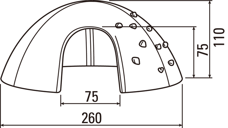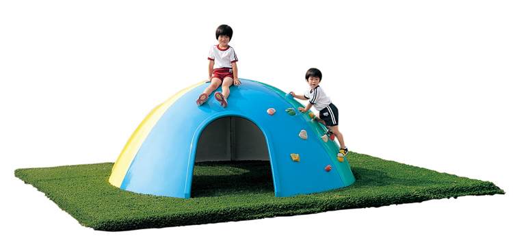 手と足を使ってホールドを登り、2か所に分かれて滑り降りることができれます。開口部の大きな3か所の出入り口からは、中に入って遊べます。