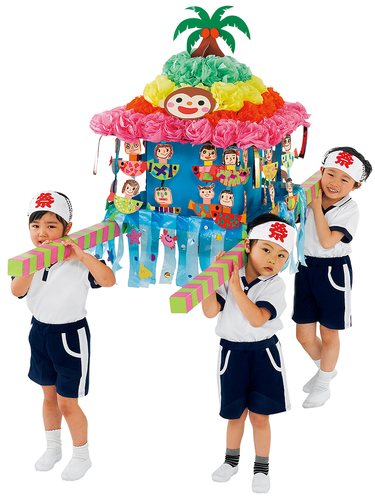 無地のダンボールのお神輿です。子どもたちと飾り付けをして仕上げます。