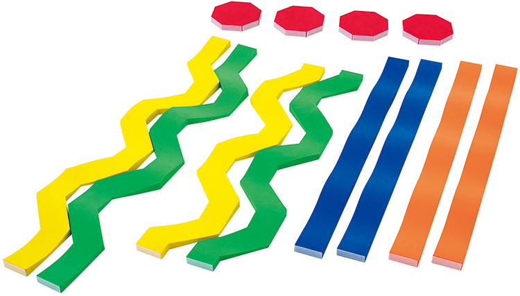 ●セット内容: ウェーブジグザグ平均台4本(長=緑×1・黄×1 短=緑×1・黄色×1)・ウェーブ平均台4本(青×2・オレンジ×2)・ジョイントパーツ 八角形(赤)4個