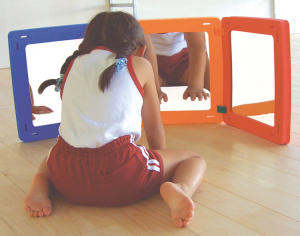 やわらかい素材土台と割れないミラーでできています。鏡に映る姿の変化を楽しむことができます。