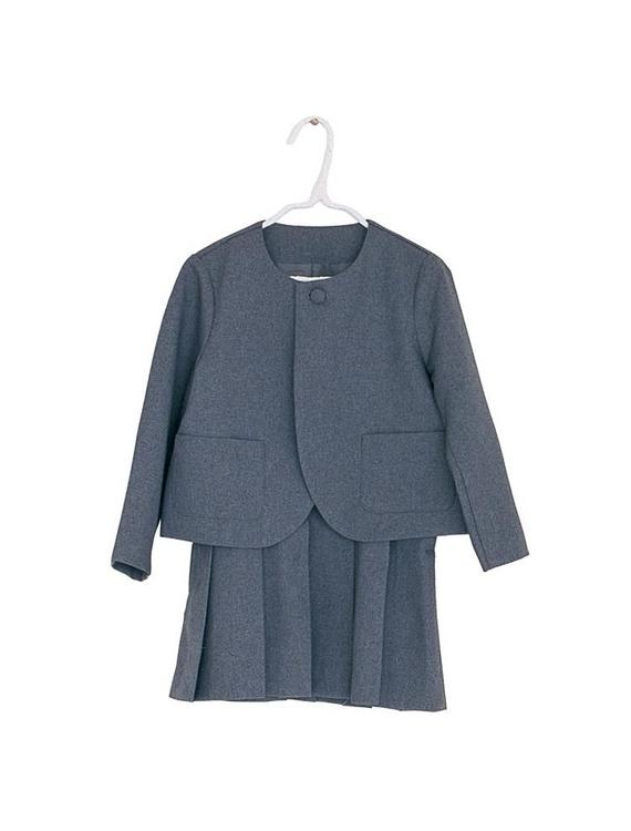 子どものかわいらしさを引き出す美しいフォルムのボレロ。霜降りのライトグレーが上品。洗練された印象を与えます。