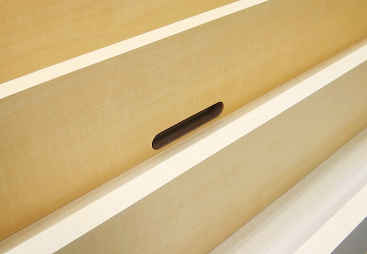 裏面が化粧板仕上げなので、仕切りとしても使用可能なコンパクトな絵本棚です。低重心で転倒しにくく、移動にも楽な取っ手付です。