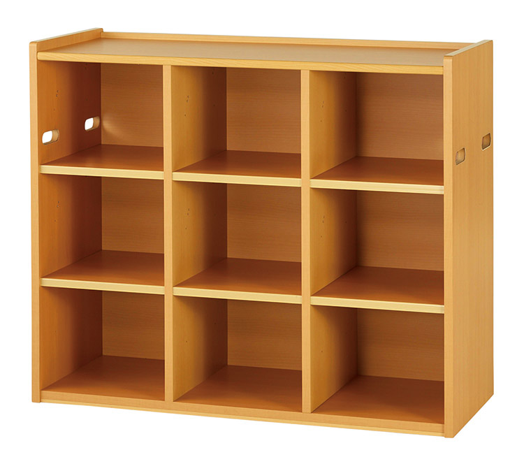 使い方に応じて棚板とフック位置を変えられます。棚位置とフックの入れ替えはもちろん、棚板の場所によっては3段ラックに、棚板を追加すればお道具箱棚としても使用できます。