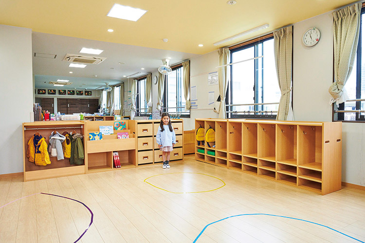 保育室設置例   棚位置を変更、 家具で保育室を仕切れます。