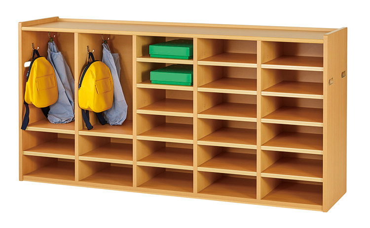 • お道具箱棚に変更できます。(写真では棚板3枚セットを3セット追加しています。)
