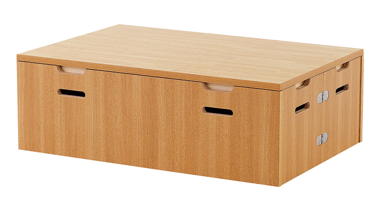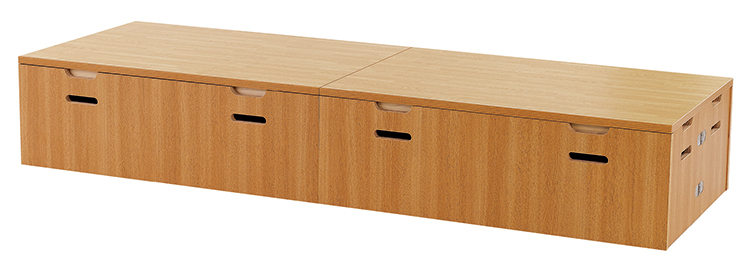 お誕生会、発表会など必要なときだけ、組み立てる簡単ステージです。2台、3台とつなげると広いステージが出来上がります。折りたたんで狭いスペースに収納できます。
