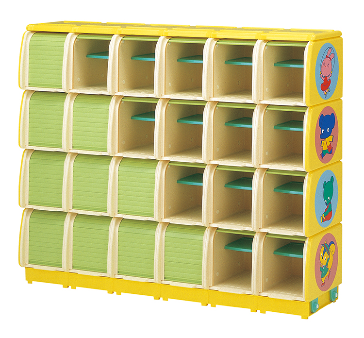 水に強いプラスチック製シューズボックスでシャッターが付いています。高さ20cmまでの長靴が収納できます。水平設置用アジャスター、壁面固定用金具付きです。