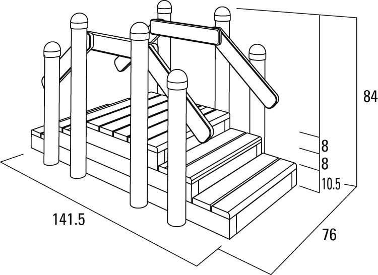 【丸太越え】 乳幼児の身長に合わせてステップの高さは10cm以下になるように設計されています。コンパクトサイズなのでテラス等のちょっとしたスペースに置くこともできます。