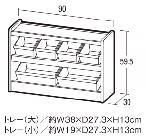 60-76155-252●セット内容:本体×1、トレー大×2、トレー小×4●材質:プリント合板、パーティクルボード、ポリプロピレン●寸法:30×90×高さ59.5cm●重量:12kg