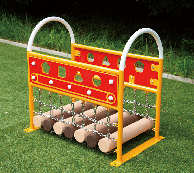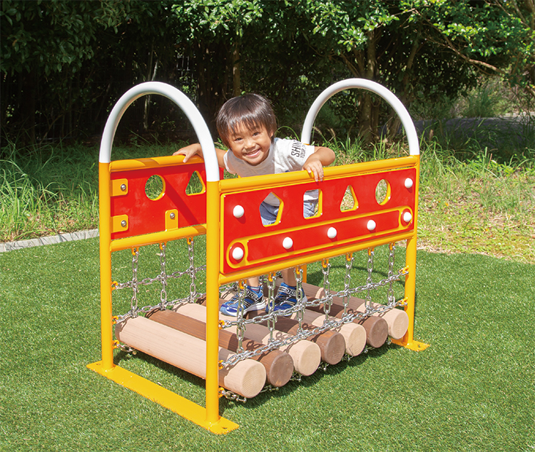 つり橋遊びです。揺れる丸太の上を渡ります。