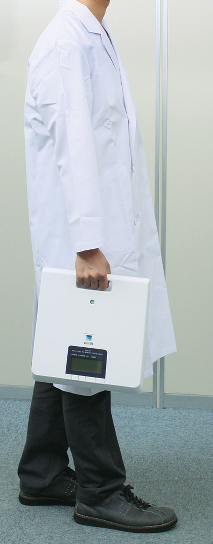 タニタ製の信頼あるデジタル体重計。プリセット風袋引き機能付で、服を着た状態での体重計測が簡単にできます。また本体は約4kgと軽く、取っ手付のため持ち運びにも便利で、電源もACアダプターと乾電池(別売)のどちらにも対応しているので場所を選ばず、体重測定ができます。表示方向の切り替え機能やバックライトがつくなど便利な機能も満載。