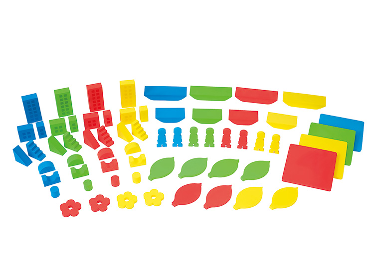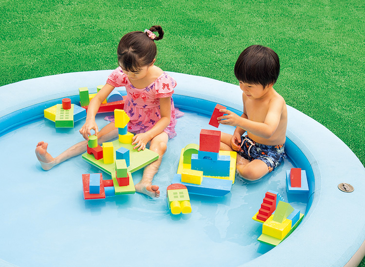 水で濡らすとブロックが縦にも横にもくっつきます。軽くて柔らかなEVA素材のブロックです。