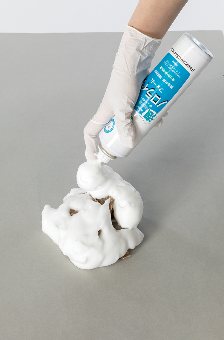 嘔吐物を、除菌成分を含んだ泡で覆うことで、雑菌と臭いをシャットアウトします。嘔吐物を処理した後、スプレーすることで床や空間を除菌できます。フォームとガン