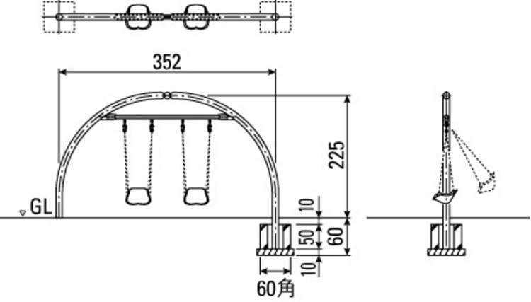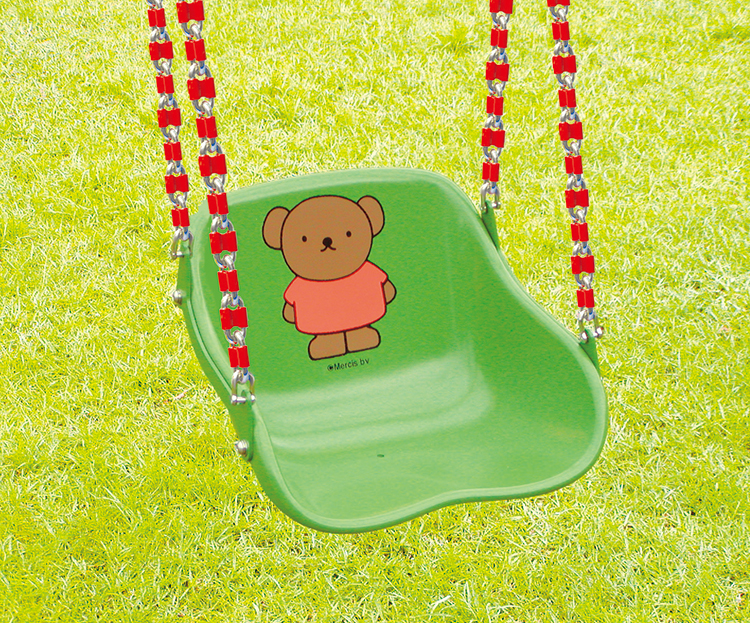 • ▲背もたれの付いた座板<br>▲指詰め防止のチェーンを使用