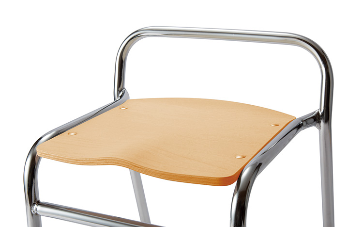 緩やかなカーブの背もたれが腰を支え姿勢の崩れを防ぎます。座面前方の山型部の立体形状が適度に脚を開かせ、前に滑り落ちることを防ぎ、安定して姿勢よく座ることをサポートする椅子です。