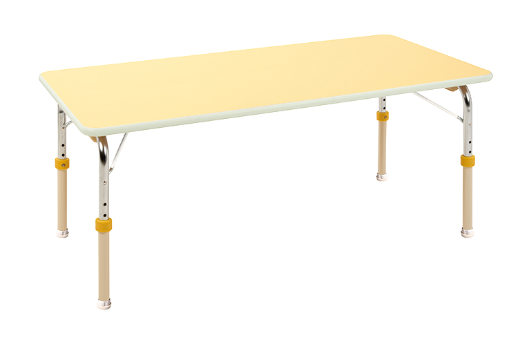 テーブルの高さが3cm刻みで3段階調節できます。高さの変更はワンタッチピンで簡単にできます。ロータイプはテーブル高さが36・39・42cm、ハイタイプはテーブル高さが45・48・51cmに調節できます。ワイド型は、天板の幅が75cmです。6人用・6人用ワイドには裏面テーブルグリップ付。