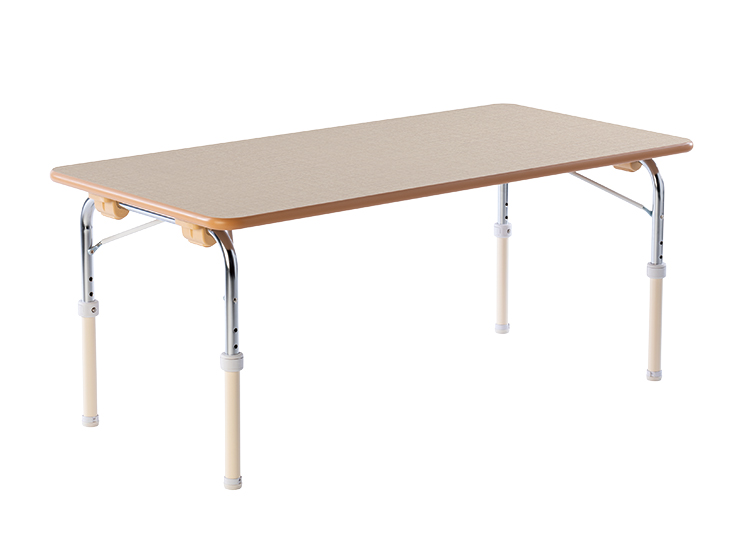 テーブル高さが3cm刻みで3段階調節できる6人、4人、2人用テーブルです。高さの変更はワンタッチピンで簡単にできます。ロータイプは、テーブル高さが36・39・42cm、ハイタイプは45・48・51cmに調節できます。6人用には裏面テーブルグリップ付。