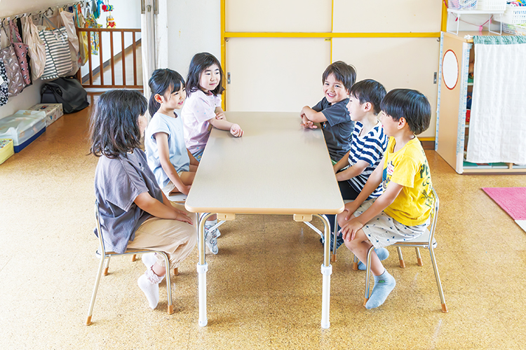 グレージュ4人用ロータイプとスタイリッシュチェアーグレージュ背付2歳児用との組み合わせ使用例 -