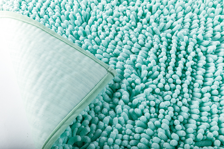 超極細繊維のマイクロファイバーを使ったモール糸を採用しており、毛細管現象で吸い取った水分は、すぐに乾きます。マットの表面はいつもサラサラの肌触りです。裏面にはズレにくいバッキングを採用。