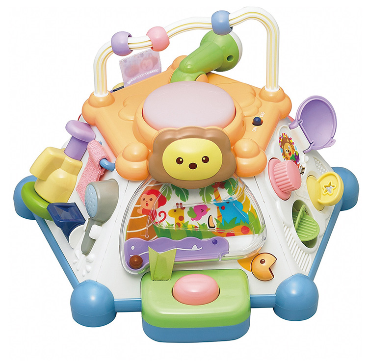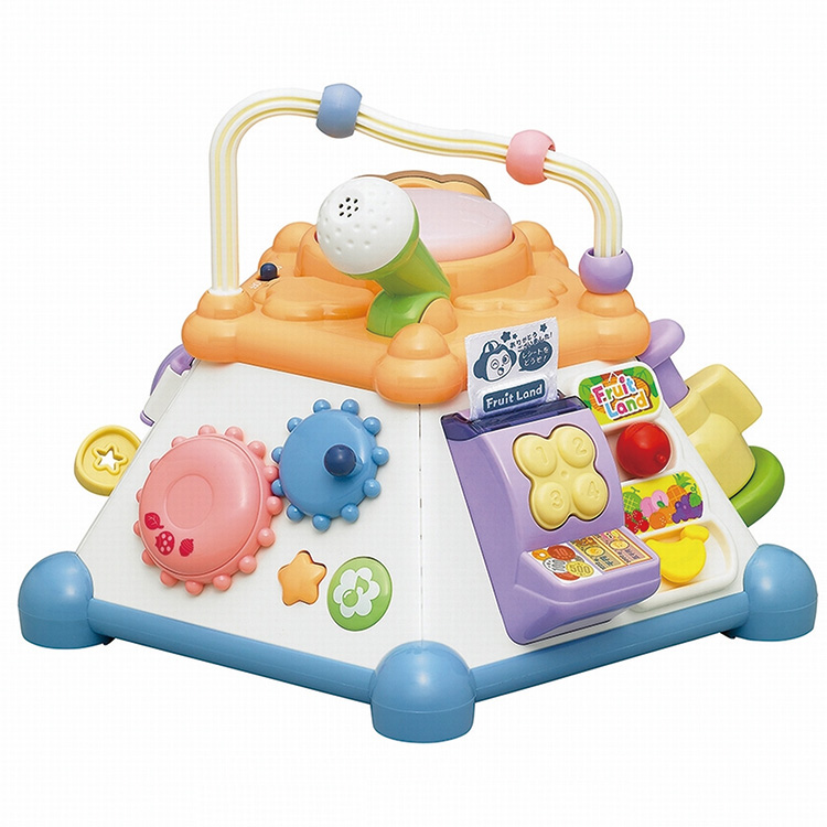 ドラム・マイク・玉飛ばし・フルーツやさん・おふろでシャワー・メロディー・カギ回しなど、多彩な20種類の仕掛けに35種類の知育の刺激で知能+想像力を育みます。8曲のメロディにゆかいなサウンド! 日本語ボイス入り。ST規格。