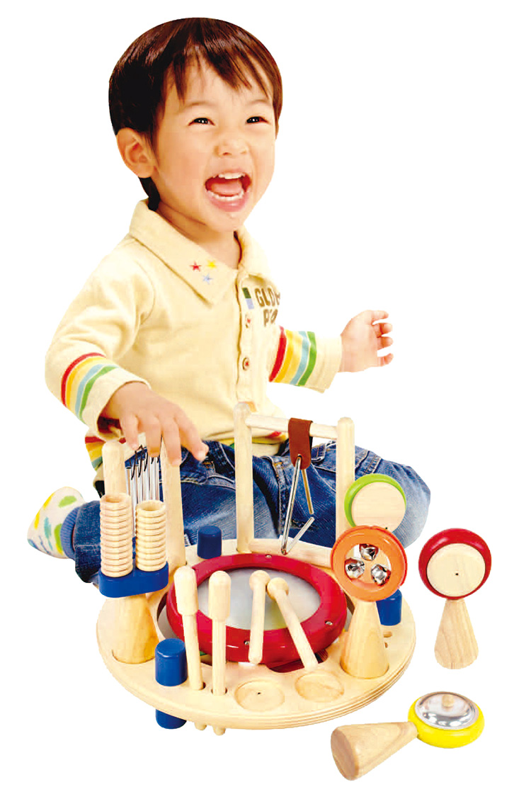 たくさんの音の鳴るおもちゃで遊べるのが魅力です。安定感のある形の持ち手で、小さな子どもでも安心して多くの音の鳴るおもちゃにふれることができます。子どもの指先の発達をリズミカルに演出します。楽器を片づける場所が決まっているのでお片づけの練習もできます。