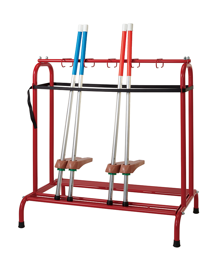 片面6セット、両面で12セットの竹馬が収納できます。底部は水、土抜きのスリットが入っています。さびにくい粉体塗装を施してあります。
