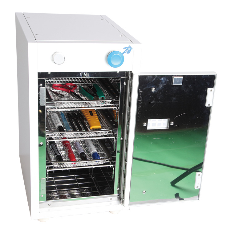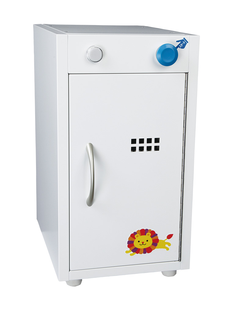 紫外線により、たった30秒で簡単に除菌ができる除菌庫です。園の玄関先に置いて登降園チェックの際に筆記具を除菌したり、子どもが靴を履き替えているちょっとした隙間時間に、連絡帳や集金袋を除菌したりと、短い時間の中で素早く除菌します。濡れると困る絵本や木製玩具・ぬいぐるみの除菌にもピッタリです。