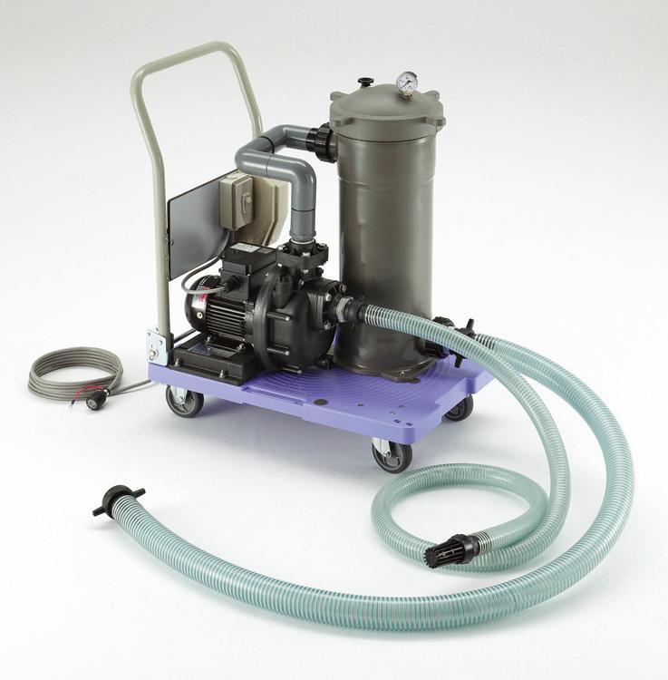 自給式ポンプを使用しています。本体は台車に固定されているので、簡単に移動することができます。
