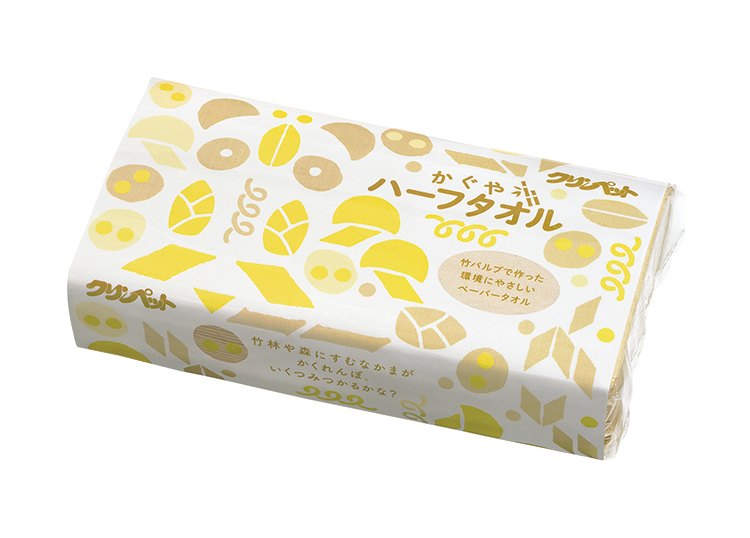 使い捨て紙タオル。レギュラーサイズの約半分の大きさです。