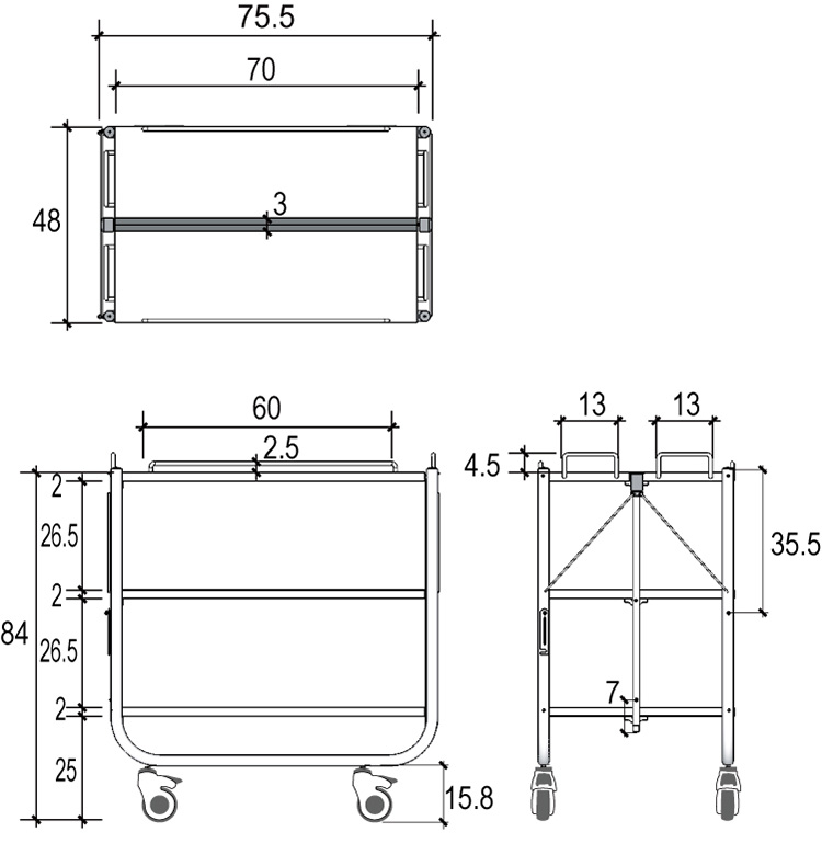 ●材質:本体=ステンレス キャスター=ポリプロピレン・TPR・ナイロン