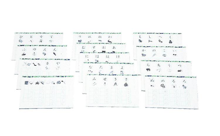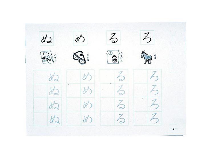 60-78238-006ひらがなの練習ができます。字形や線の要素が似かよったものどうしが1冊になっているので、系統的に練習できます。初めはなぞり、次にマス目に書く練習をします。