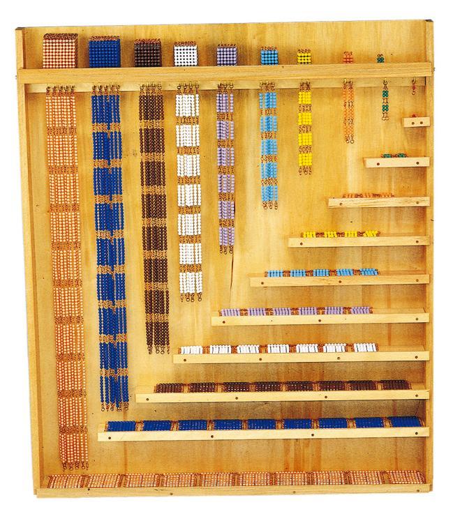 色棒ビーズと金ビーズのセットです。大きな数の足し算やかけ算に使います。ビーズで正方形を作って、二乗を理解し、立体を作って三乗を理解します。