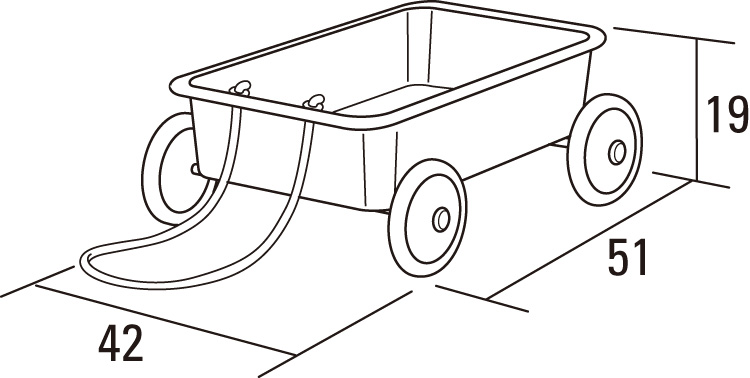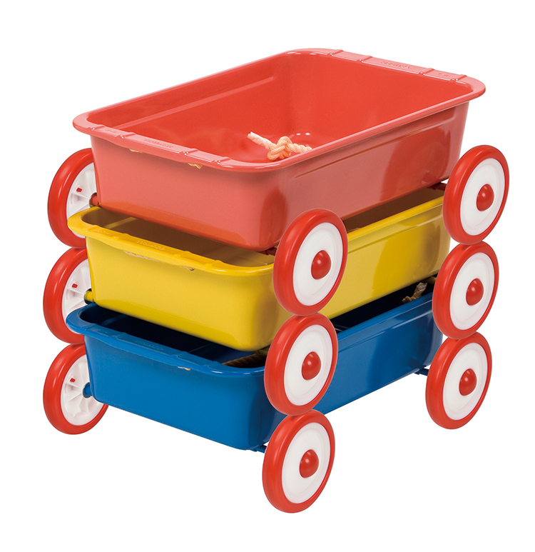 60-78354-201●材質:フレーム=スチール(紛体塗装)、タイヤ=ポリプロピレン・EVA樹脂●寸法:51X42X19cm/台●重量:約3kg/台●その他の仕様:●色内容:赤・青・オレンジ