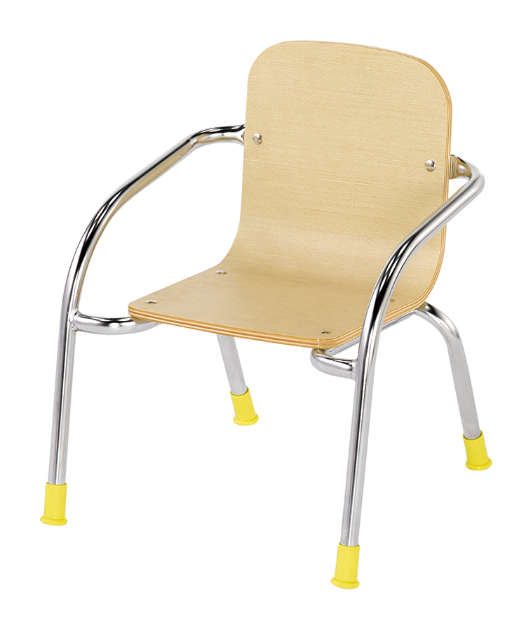 キズ、ささくれができにくい、耐久性が高いイスです。行事のときなど、異なる年齢のクラスが一緒になった場合でも見分けやすいように、各サイズで脚キャップの色を変えてあります。