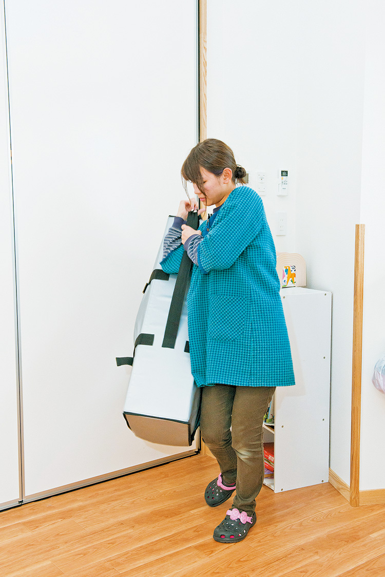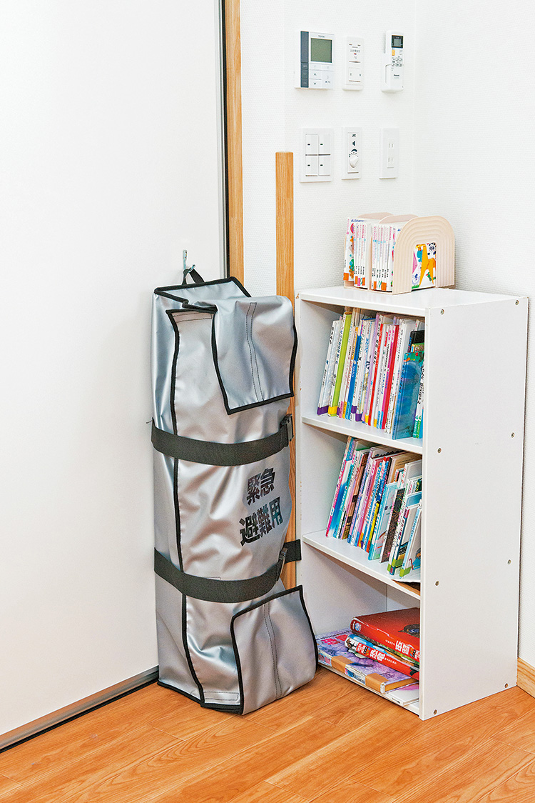 ▲有事の際は肩に掛けて避難できます。