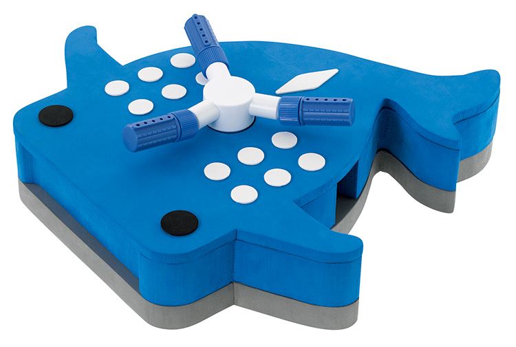 ジンベエザメをモチーフにした水遊び用玩具です。ホースを使い、水道につないで使うことができ、本体はEVA製なので水に浮かびます。
