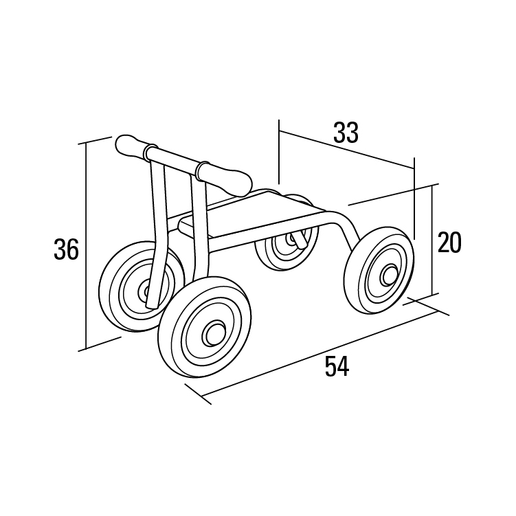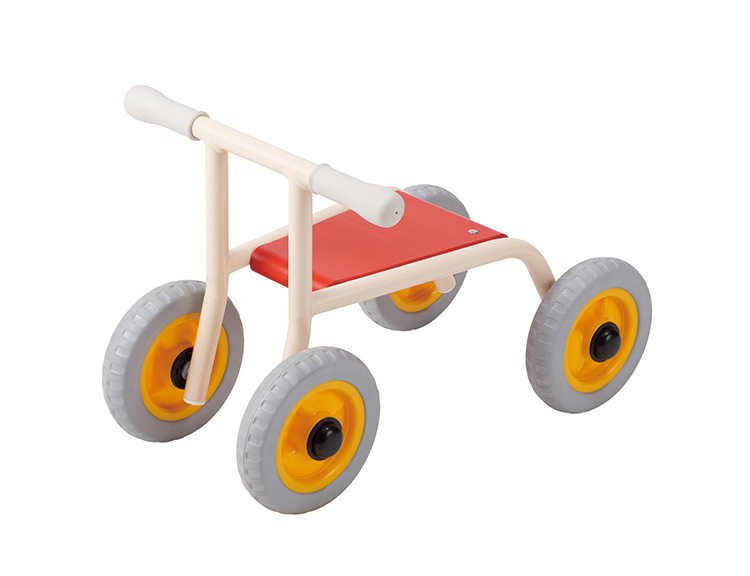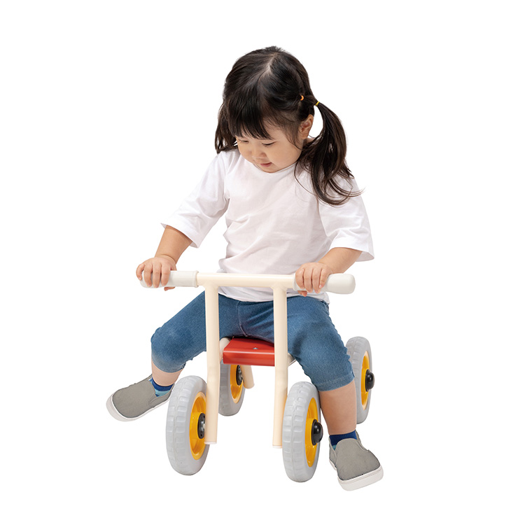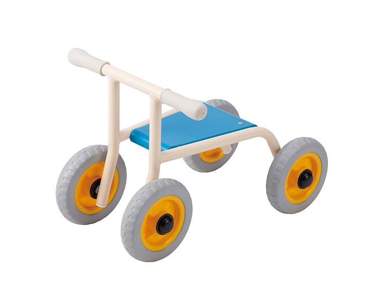 屋外仕様の4輪バギーです。屋外で使用しても耐久性のあるタイヤとグリップを採用しています。ハンドル・タイヤは固定型で動きに制限があるため、低年齢児でも安心して乗ることができます。