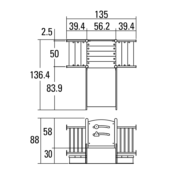 ●重量:ドーム=45kg スロープ・回転遊び=55kg テーブル=13kg ベンチ=4kg 見張り台=36kg ネットトンネル・ポリカトンネル=25kg リング登り=10kg