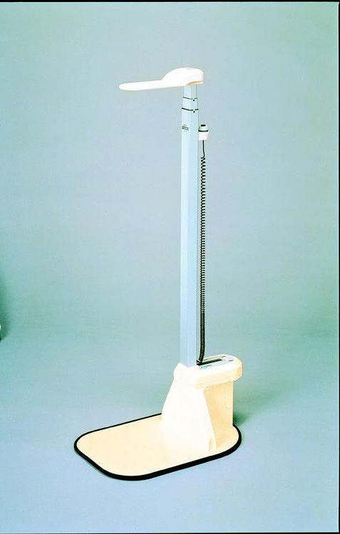 表示部分が足元にあるので、計測者は座ったままで数値が読み取れます。支柱は3段伸縮式でコンパクトになり、収納、保管が容易です。