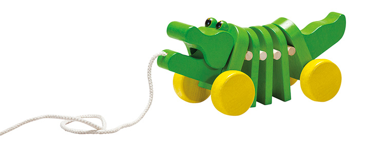 ワニさんを引っ張ると、カタカタとリズミカルな音を立てながらついてきます。楽しい動きににも注目です。