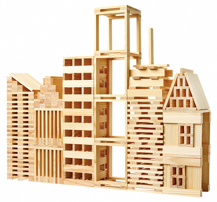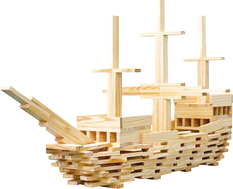 1サイズの板を重ねるだけの木製ブロックです。表現力、創造力、集中力、器用さを養い、友達と協力して作品を作ることでコミュニケーション能力など、さまざまな力を総合的に育みます。