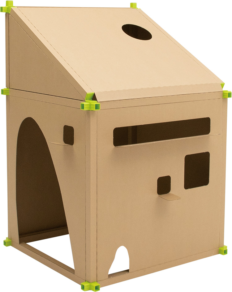 カカポType1は、紙管をジョイントでつないで頑丈な骨組みを作り、段ボールの板を壁や天井としてはめ込むことで、家の中に「家」を作れます。Type1→Type2→Type3と拡張することで、より大きな「家」を作ることができます。