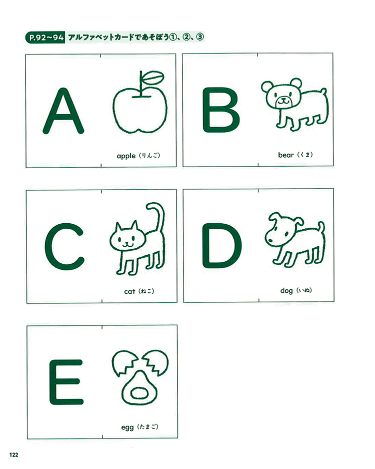 言葉、文字、表現の言語活動、数や比較、色、形、数量にふれられるあそびのアイディアが満載! 巻末のしかけカードや「あそびシート」は、二次元コードからPDFでダウンロード可能。