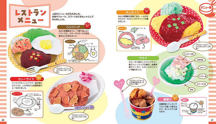 普段のごっこあそびから、お店屋さんごっこなどの行事にも使える、「食べ物」の製作アイディアが満載。調理道具やレジ、財布、お金、ユニフォームなど、グッズの製作アイディアも。「食材写真ダウンロードコンテンツ」付。