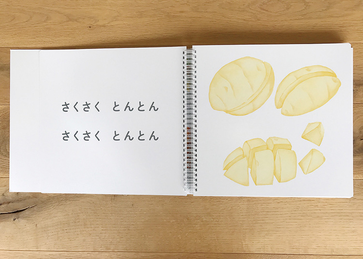 みずみずしく、美しいお野菜の挿し絵で、切って・調理して「はい、どうぞ」のやり取りを楽しめるえほんです。