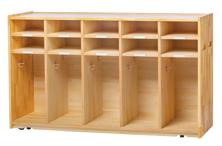 (5段ロッカー上段)棚板位置が上段、フックが下段。