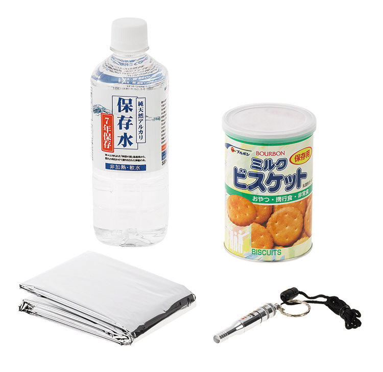 ※賞味期限は、製造日からビスケットは5年、水は7年です。