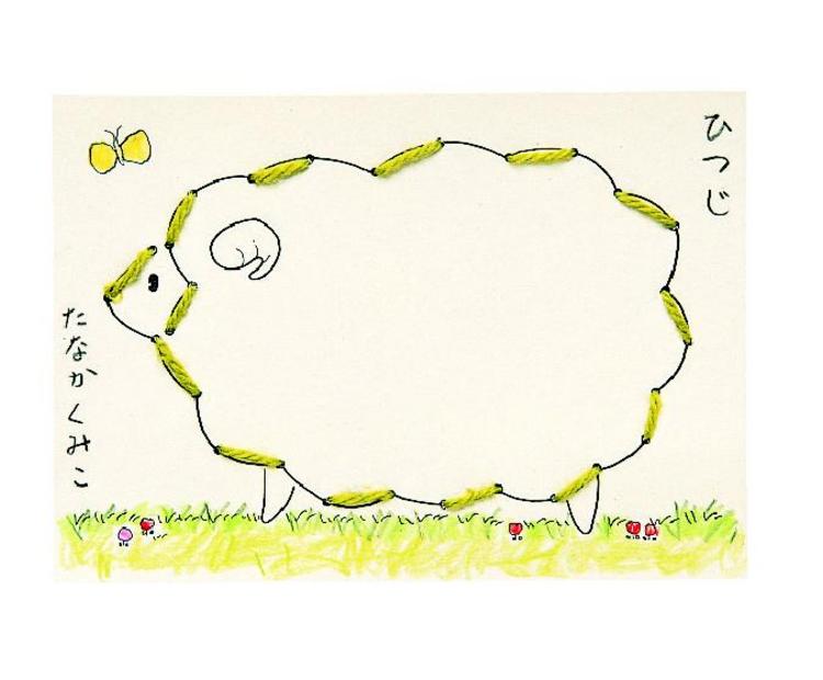 毛糸針に毛糸を通して、絵柄に合わせて縫っていきます。(縫う前に、穴開け針で黒丸部分に穴を開けます。)